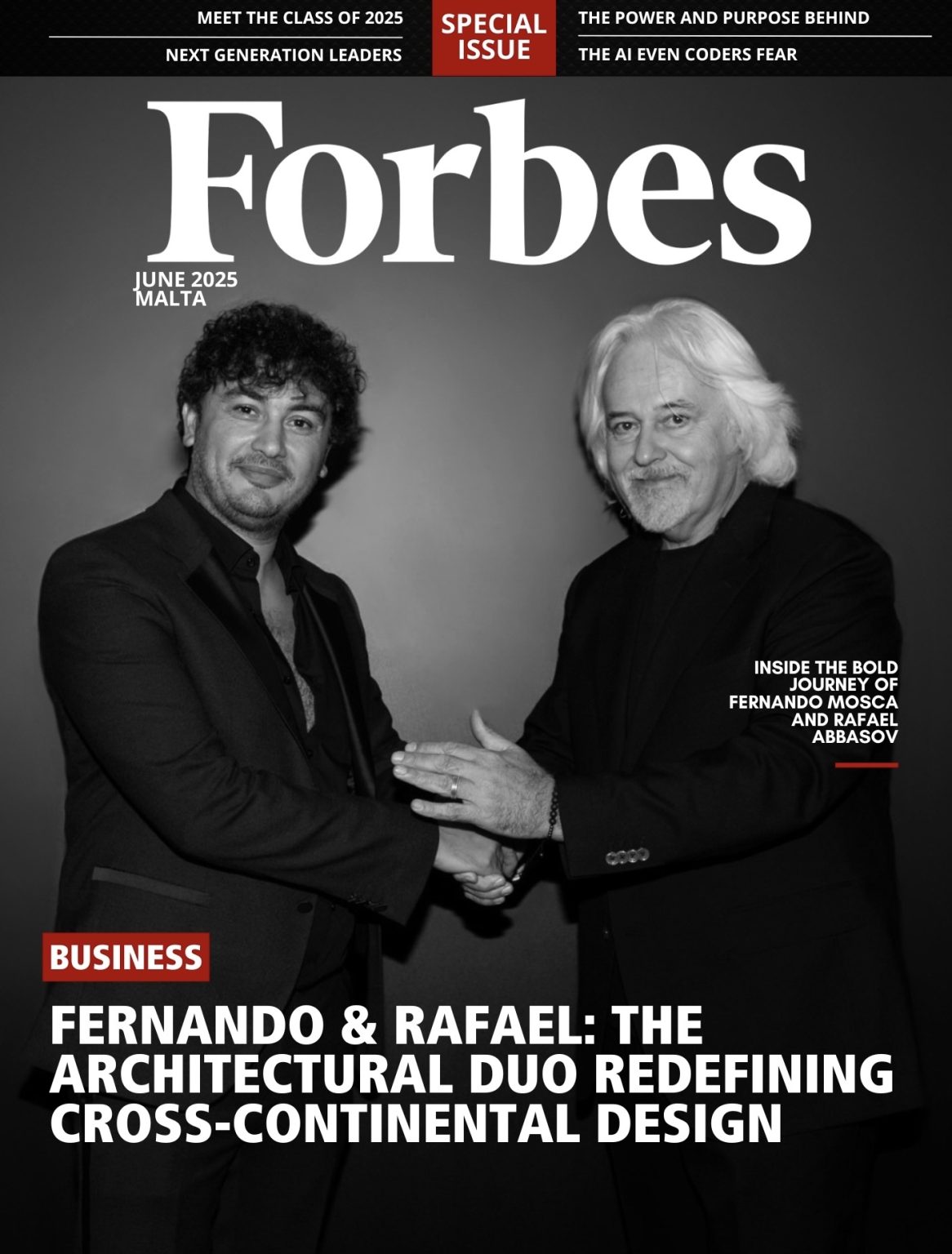 “Forbes” jurnalının üz qabığında yer alan memarlıq dueti, qlobal miqyasda həyata keçirdikləri lüks layihələrlə və aparıcı markalarla əməkdaşlıqları ilə diqqət çəkir. Məqalədə studiyanın dizayn fəlsəfəsi, brendlərə uyğun fərdi yanaşması və memarlıqda innovativ həlləri yüksək qiymətləndirilir.