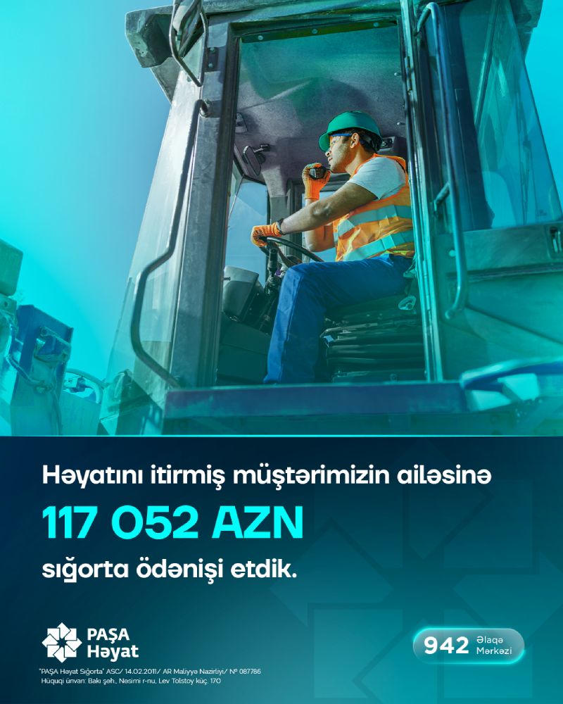 Vəfat etmiş şəxsin ailəsinə 117 052 AZN həcmində birdəfəlik sığorta ödənişi verilib.