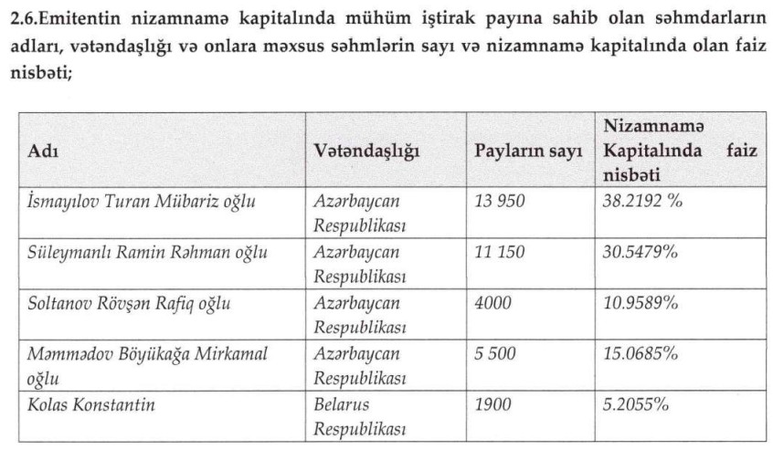 Marja.az xəbər verir ki, səhmlərin yerləşdirilməsi uğurla yekunlaşarsa lizinq şirkətinin nizamnamə kapitalı 550 min manat artaraq 4 milyon 200 min manata yüksələcəkdir.