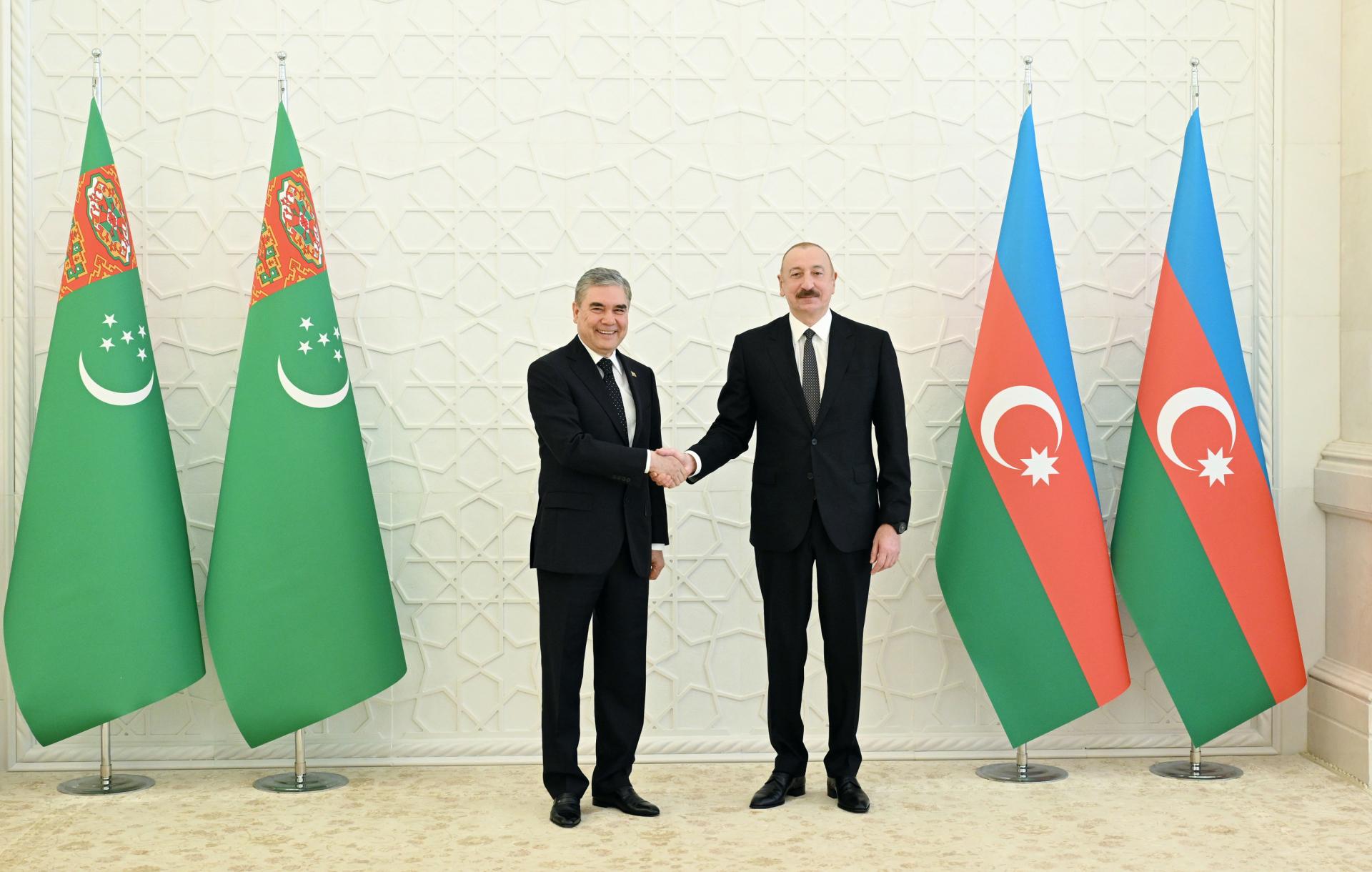 Azərbaycana xoş gəlmisiniz. Sizi səmimiyyətlə salamlayıram. Əminəm ki, səfəriniz Türkmənistan-Azərbaycan qardaşlıq əlaqələrinin inkişafına öz töhfəsini verəcək. Xalqlarımızı dərin qardaşlıq ənənələri birləşdirir və müstəqillik dövründə bu əlaqələr daha da gücləndi. Biz bir çox sahələrdə uğurla əməkdaşlıq edirik və iki ölkə müstəqil siyasət apararaq gələcəyə inamla baxır. Bizim aramızdakı tarixi əlaqələr bugünkü əlaqələr üçün əsas zəmindir və əminəm ki, Sizin səfəriniz bizim münasibətlərimizə yeni təkan verəcək. Siyasi, iqtisadi, humanitar və digər sahələrdə, o cümlədən nəqliyyat, energetika sahələrində bir çox nailiyyətlərimiz var və əlbəttə ki, gələcək əməkdaşlıqla bağlı bu gün fikir mübadiləsi aparacağıq.