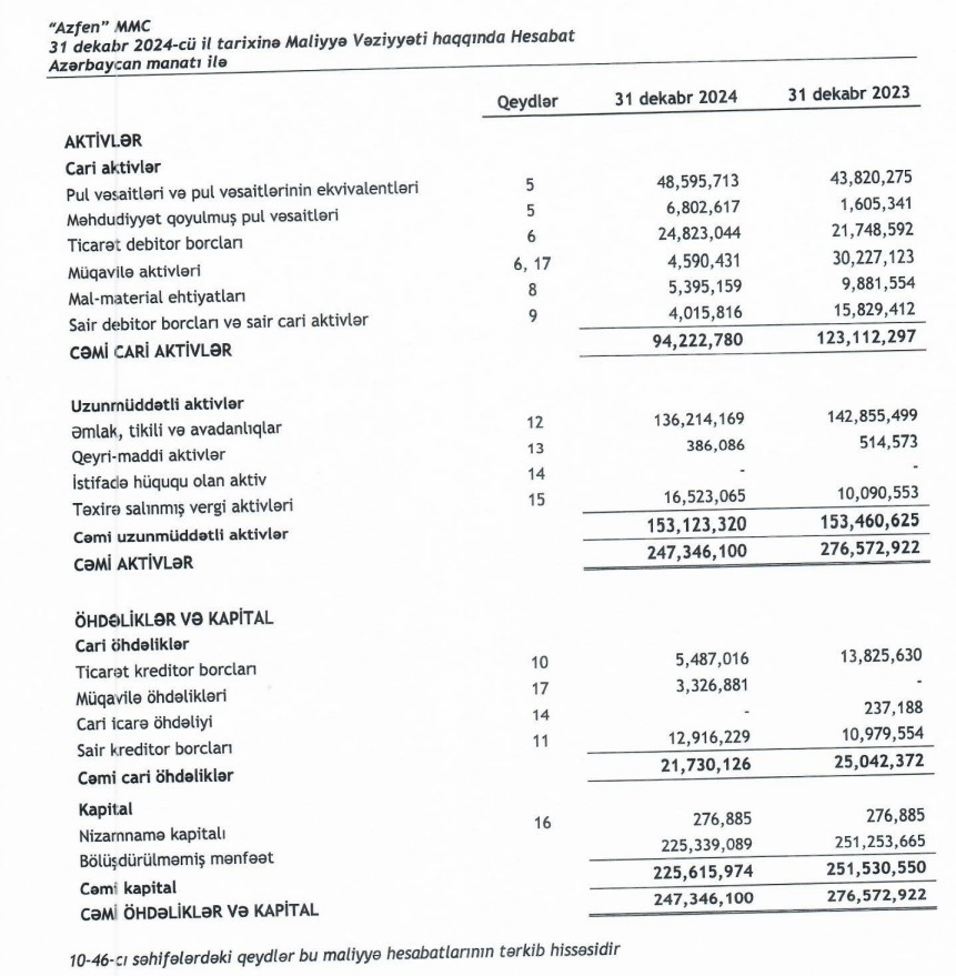 "Azfen" MMC 2024-cü ili 25 milyon 915 min manat xalis zərər ilə başa vurub. Halbuki, Şirkət 2023-cü ili 11 milyon 466 min manat xalis mənfəət ilə bağlamışdı.