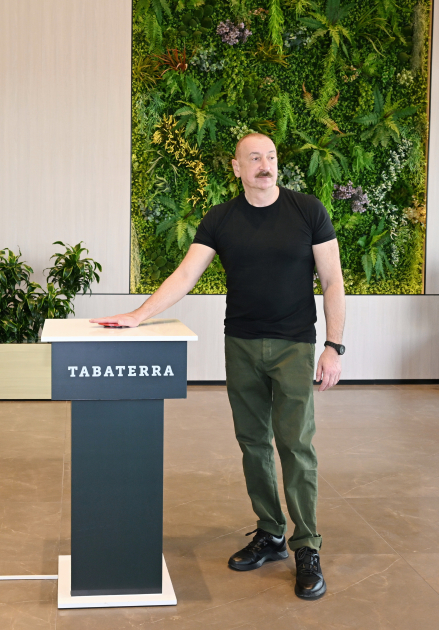 Sonra “Tabaterra” MMC-nin direktoru Elman Cavanşir dövlətimizin başçısına müəssisə barədə məlumat verib.