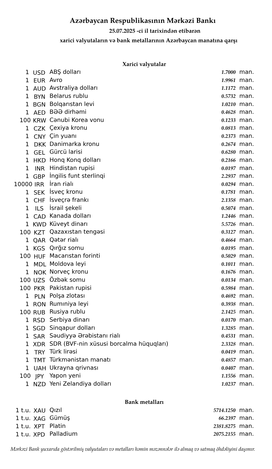 Dolların sabah üçün rəsmi məzənnəsi müəyyən olunub