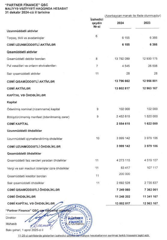 Əlavə edək ki, "Partner Finance" şirkəti 2022-ci ili 470 min manat xalis mənfəət ilə bağlamışdı. 2023-cü ildə "Partner Fiпапсе"ın xalis mənfəəti 58,3% artımışdı.