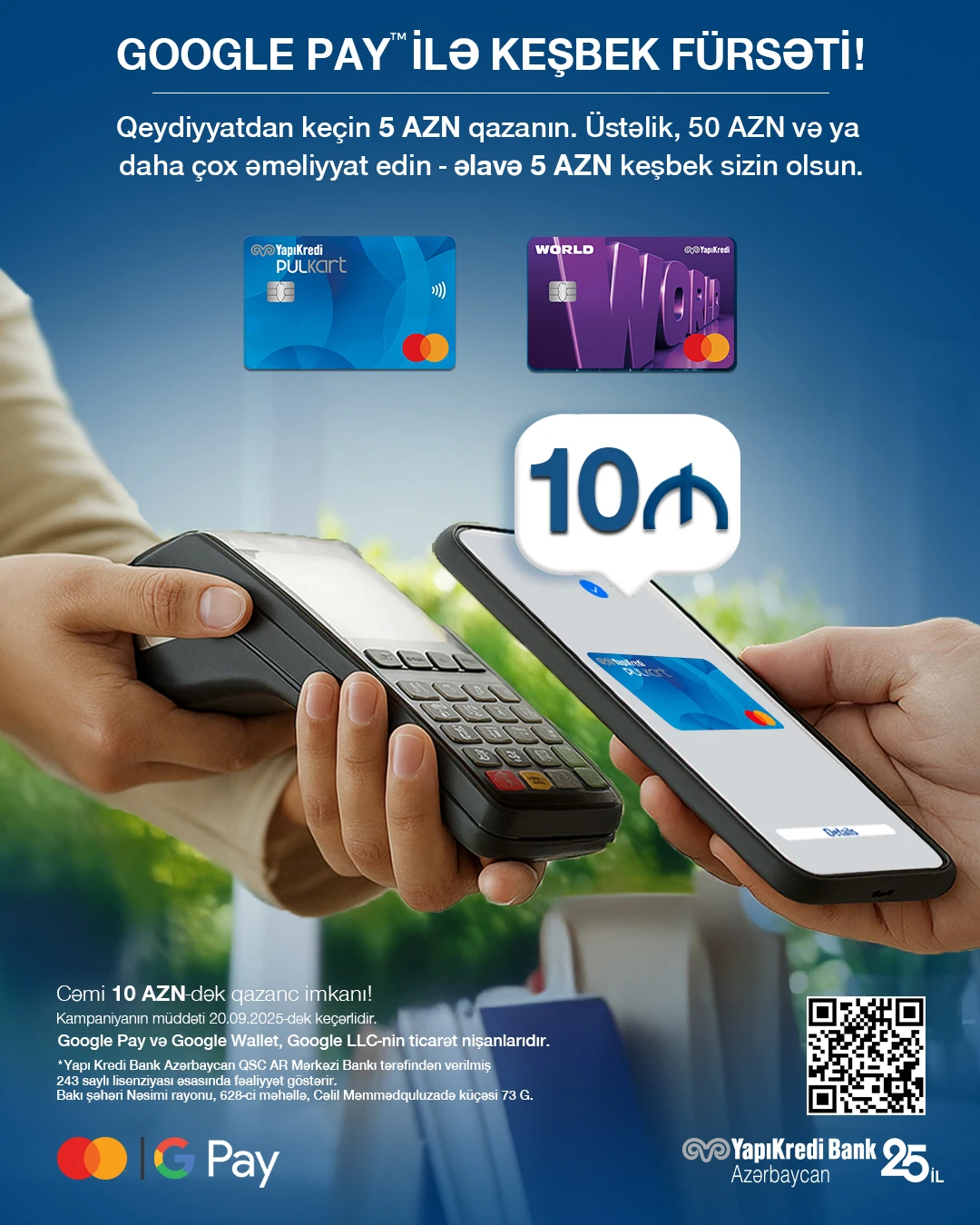 Kampaniya çərçivəsində müştərilər Google Pay tətbiqinə ilk dəfə Yapı Kredi Bank Mastercard kartını əlavə etməklə 5 AZN keşbek, həmçinin Google Pay ilə 50 AZN və ya daha çox əməliyyat etdikdə əlavə 5 AZN keşbek qazanaraq ümumilikdə 10 AZN-ə qədər keşbek əldə edə biləcəklər.