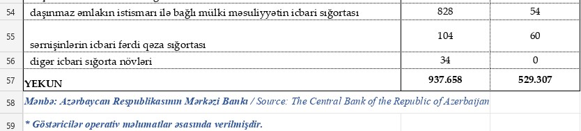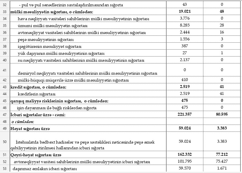 Hesabat dövründə icbari sığorta növləri üzrə ödənişlərin məbləği 80 milyon 595 milyon manat təşkil edib ki, bu da 1 il əvvələ nisbətən 9,8 % çoxdur.