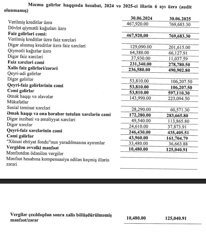 "Regional" BOKT-ın kredit portfeli 30 iyun 2024-cü il tarixindəki göstərici ilə müqayisədə 1 milyon 403 min manat və ya 42,5% artaraq 30 iyun 2025-ci il tarixində 4 milyon 705 min manata çatıb.