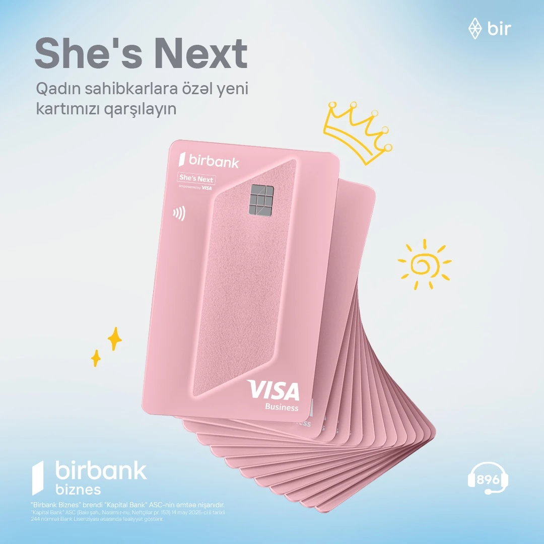 (®) Birbank Biznes tərəfindən Azərbaycanda qadın sahibkarlığının inkişafına dəstək məqsədilə təqdim olunan “She’s Next” biznes kartı istifadəçilərə müxtəlif imkanlar yaradır. Bu eksklüziv kart həm hüquqi şəxslər, həm də fərdi sahibkar statusuna malik xanımlar üçün nəzərdə tutulub.