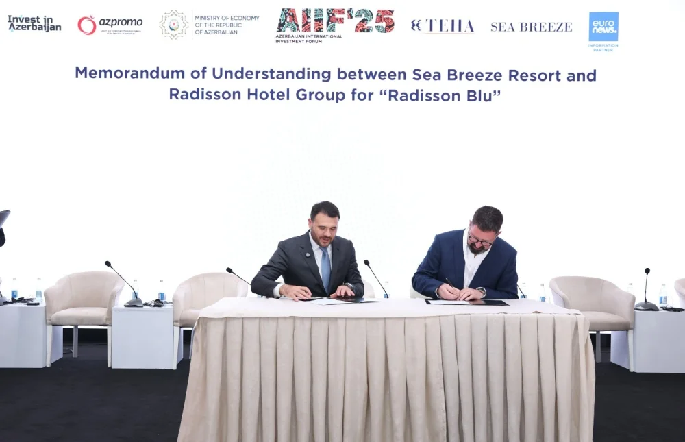“Sea Breeze Resort” ilə beynəlxalq hotel şəbəkəsi olan Radisson Hotel Group arasında “Radisson Blu” markası altında yeni otelin yaradılmasına dair Anlaşma Memorandumu imzalanıb. Sənədi “Sea Breeze Resort”un sahibi və qurucusu, həmçinin “Agalarov Development”in prezidenti Emin Ağalarov və Radisson Blu-nun Şərqi Avropa üzrə Biznesin İnkişafı üzrə vitse-prezidenti David Jenkins imzalayıblar. Memorandum çərçivəsində tərəflər “Sea Breeze” ərazisində “Radisson Blu” brendi ilə fəaliyyət göstərəcək otelin yaradılması, idarə edilməsi və beynəlxalq standartlara uyğun xidmətlərin təmin olunması istiqamətində əməkdaşlıq edəcəklər. Layihə həmçinin turizmin inkişafına, beynəlxalq səviyyədə tanıtıma və yeni investisiya imkanlarının açılmasına töhfə verməyi hədəfləyir.