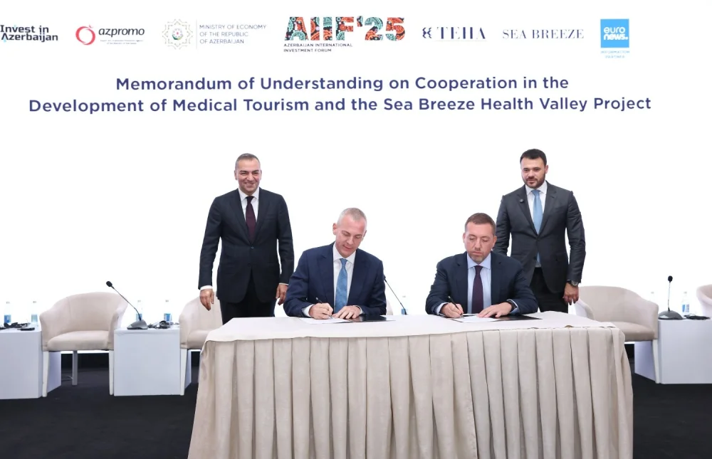 Tibbi turizmin inkişafı və “Sea Breeze Health Valley” layihələri üzrə Əməkdaşlığa dair Anlaşma Memorandumu imzalanıb. Tibbi turizm infrastrukturunun inkişafını nəzərdə tutan Sənəd “Sea Breeze Resort”un təsisçisi və “Agalarov Development”in prezidenti Emin Ağalarov və “Sea Breeze Health Valley” şirkətinin rəhbəri Konstantin Qrinfeld tərəfindən imzalanıb.