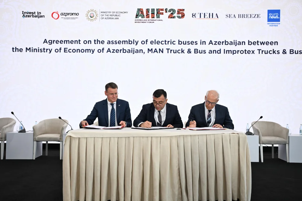 “Improtex Group” şirkəti ilə MAN Truck & Bus şirkəti arasında Azərbaycanda elektrik avtobuslarının yığılması üzrə Müqavilə imzalanıb. Müqaviləni iqtisadiyyat nazirinin müavini Səməd Bəşirli, “Improtex Group”un prezidenti Füzuli Ələkbərov və MAN Truck & Bus şirkətinin nümayəndəsi imzalayıblar.