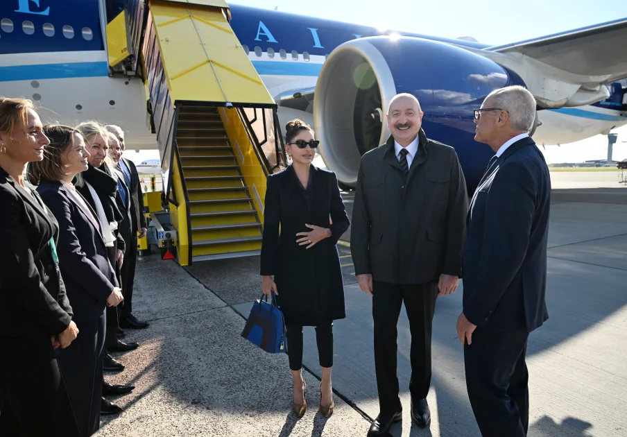 Kopenhagen şəhərinin beynəlxalq aeroportunda Prezident İlham Əliyevi və birinci xanım Mehriban Əliyevanı rəsmi şəxslər qarşılayıblar.
