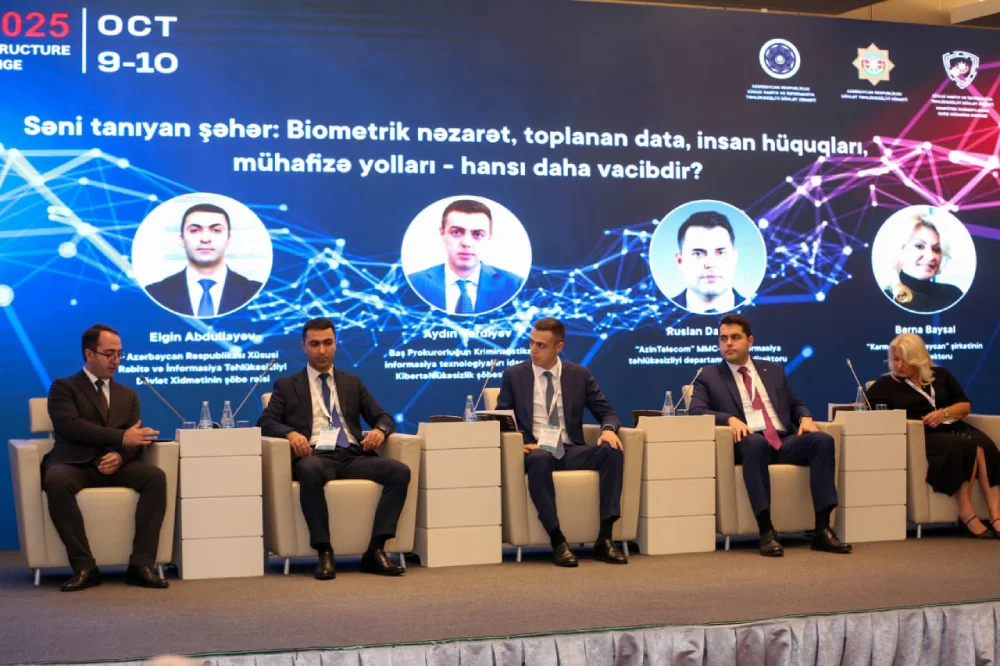 Tədbirin ikinci günündə “AzInTelecom”un İnformasiya təhlükəsizliyi departamentinin direktoru Ruslan Dadayev “Səni tanıyan şəhər: biometrik nəzarət, toplanan data, insan hüquqları, mühafizə yolları – hansı daha vacibdir?” panelində çıxış edərək “bulud” infrastrukturunda kibertəhlükəsizlik baxımından həssas məlumatların, o cümlədən biometrik dataların qorunması üçün hansı texnoloji və təhlükəsizlik tədbirlərinin həyata keçirildiyindən danışıb. O, “bulud” mühitində biometrik və digər həssas məlumatların qorunması məqsədilə tətbiq olunan şifrləmə və autentifikasiya texnologiyalarının effektivliyini diqqətə çatdırıb.