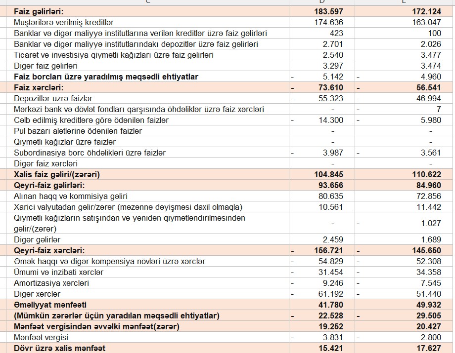 Lakin faiz xərcləri daha sürətli templə artıb – 73 milyon 609 min manata çatıb, yəni ötən ilin eyni dövrünə (56 milyon 541 min manat) nisbətən 17 milyon 68 min manat və ya 30,2% artıb. Bu, depozit faizlərinin artması, eləcə də maliyyə resurslarının dəyərinin yüksəlməsi ilə bağlıdır.
