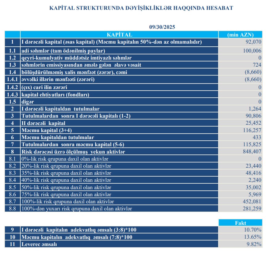 Cəmi əməliyyat xərcləri (faiz + qeyri-faiz xərcləri) isə 70,9 milyon manat təşkil edib. 2024-cü ildə bu göstərici 64,1 milyon manat idi. Nəticədə xərclərdə 6,8 milyon manat və ya 10,6% artım qeydə alınıb.