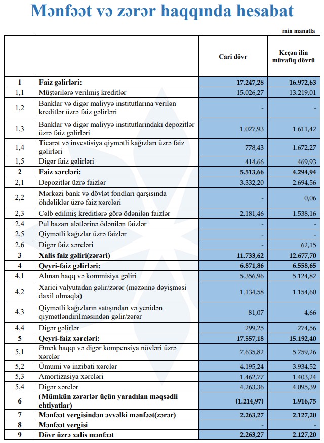 Buna baxmayaraq, “AFB Bank” 2025-ci ilin ilk doqquz ayında 2 milyon 263 min manat xalis mənfəət əldə edib. Bu, ötən ilin eyni dövründəki 2 milyon 127 min manat göstəricisi ilə müqayisədə 6,4% artım deməkdir.