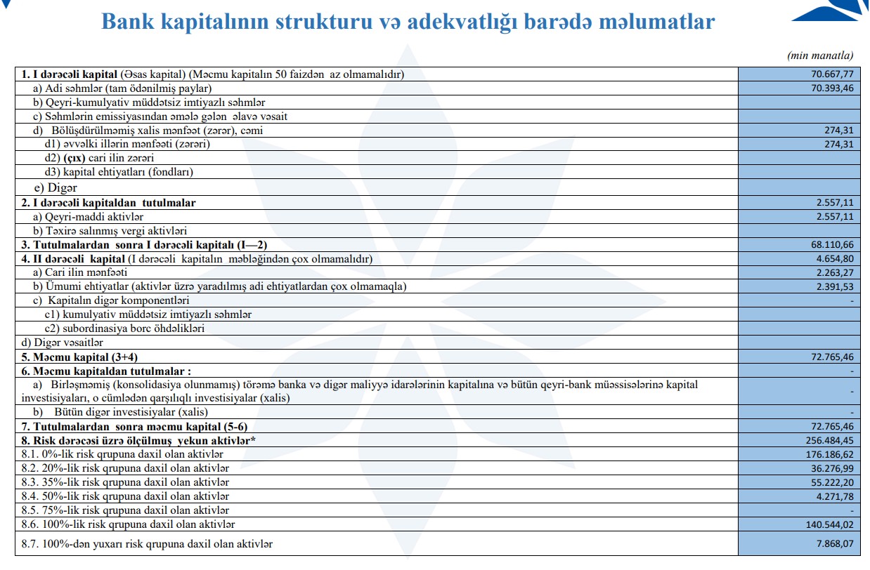 “AFB Bank”ın məcmu kapitalı isə bir qədər azalıb – 2024-cü ilin sonundakı 75 milyon 26 min manatdan 2025-ci ilin sentyabrına 72 milyon 765 min manata enib (−3,0%).