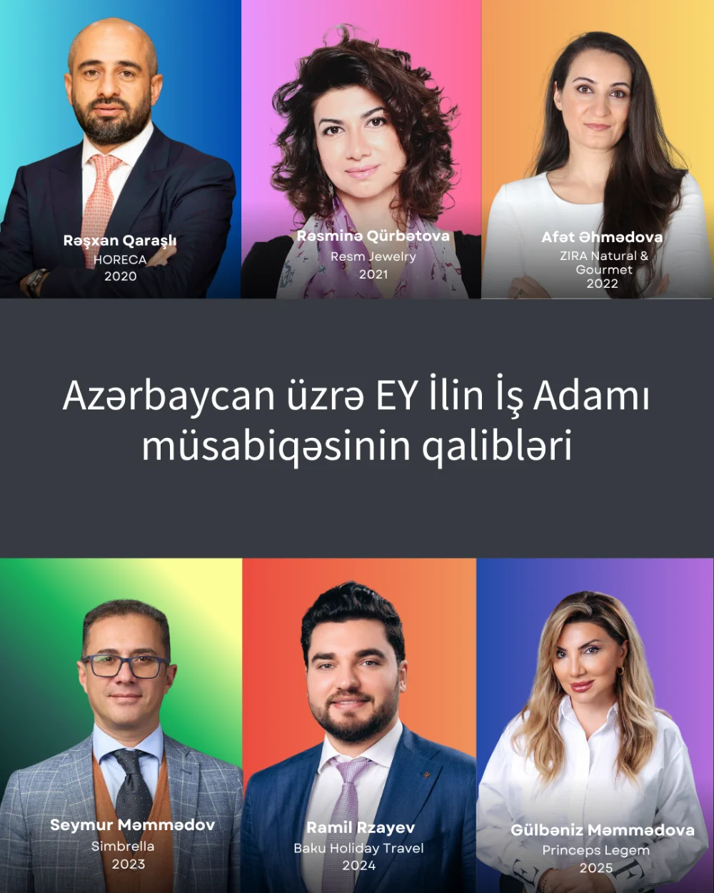 40 ilə yaxındır ki, təsis edilmiş “EY İlin İş Adamı” proqramı öz cəmiyyətində, ölkəsində və dünyada həyat keyfiyyətini yaxşılaşdıran, daim innovasiyalara imza atan, yeni iş yerləri yaradan və fəaliyyət göstərdikləri sahələri təkmilləşdirən uğurlu sahibkarların nailiyyətlərini tanıyır.