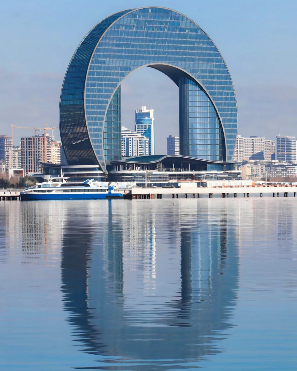 Aypara formasında dizayn edilən bu memarlıq möcüzəsi Bakı panoramasına yeni nəfəs verir. Fərqli və zərif dizaynı artıq şəhərin yeni rəmzinə çevrilib və müasir memarlıq simvolları arasında öz layiqli yerini tutub.