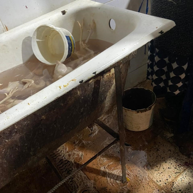Qida Təhlükəsizliyi Agentliyinin əməkdaşları tərəfindən Abşeron rayonu, Xırdalan şəhəri, M.Müşfiq küçəsi, ev 3 ünvanında fiziki şəxs Salahov Şahin Salam oğluna məxsus həyətyanı sahədə qida təhlükəsizliyi qeydiyyatından keçmədən, antisanitar şəraitdə qanunsuz fəaliyyət göstərən quş kəsimi sexi aşkarlanıb.