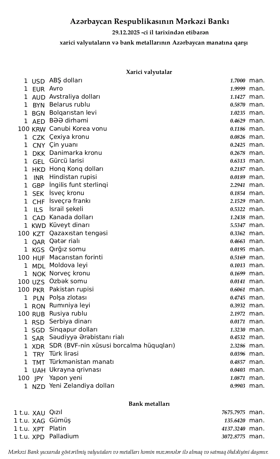 Bayram günlərində 12 bankın 60 satış nöqtəsi, 68 poçt şöbəsi və valyuta mübadiləsi məntəqələri xidmət göstərəcək - SİYAHI