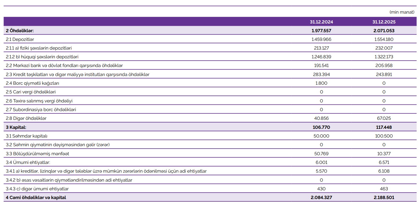 Mənfəətdəki kəskin azalma əsasən faiz və qeyri-faiz xərclərinin sürətli artımı, eləcə də mümkün zərərlər üçün yaradılan ehtiyatlara ayırmaların yüksəlməsi ilə bağlı olub. Bununla yanaşı, Bank 2025-ci ildə əməliyyat gəlirlərini, aktivlərini və depozit bazasını genişləndirib.