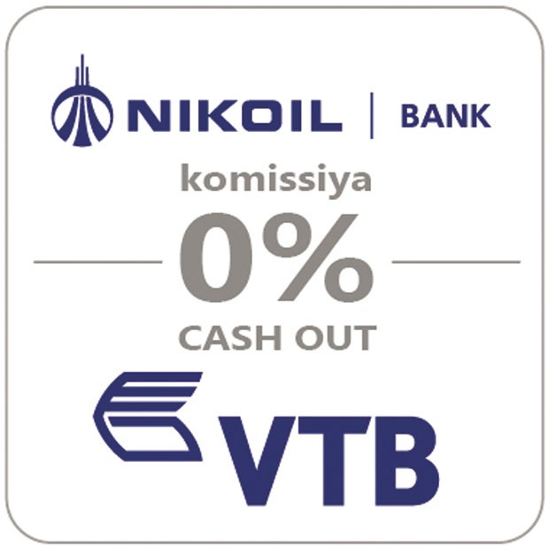 Bank VTB (Azərbaycan)-n yaydığı məlumatda da deyilir ki, VTB (Azərbaycan) kart sahibləri NIKOIL | Bankın bankomatlarından əlavə komissiyasız nağd vəsait çıxara bilər.