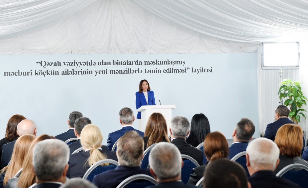 Mehriban xanım Əliyeva dövlətimizin bu illər ərzində qaçqın və məcburi köçkünlərin yaşayış şəraitinin yaxşılaşdırılması ilə bağlı mühüm işlər gördüyünü, onların yeni mənzillərə köçürüldüyünü, iş yerləri ilə təmin olunduqlarını qeyd edib. Vurğulayıb ki, indiki mərhələdə uyğunlaşdırılmış binalarda, ilk növbədə isə qəzalı vəziyyətdə olan evlərdə yaşayan bu cür insanların mənzil məsələlərinin həlli diqqət mərkəzindədir və gələcəkdə də bu istiqamətdə addımlar atılacaq.