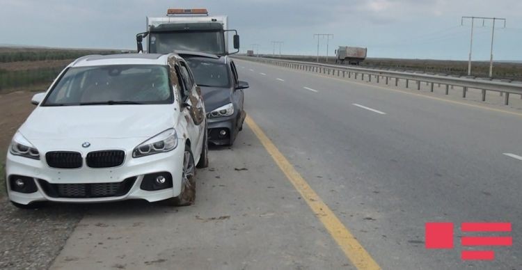 Ələt-Astara magistralının Salyan rayonu Kürsəngi kəndi ərazisində Gürcüstanın özəl şirkətlərindən birinə məxsus NK-275-NK dövlət nömrə nişanlı, “Mercedes” markalı TIR tipli qoşqulu yük avtomobili aşıb. Nəticədə satış üçün nəzərdə tutulan 7 ədəd BMW markalı minik avtomobilləri əzilib.