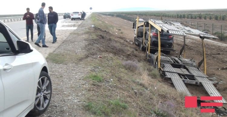Salyanda avtomobil daşıyan TIR aşdı, maşınlar əzildi