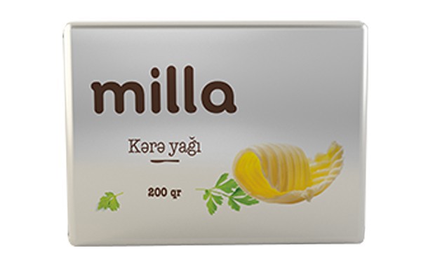 “Milla” kərə yağı “Səba”dan da bahadır. “Milla”nın kiloqramı 17,40 manata, 180 qramlıq qablaşdırmada isə 3,13 manata təklif olunur. Qeyd edək ki, "Milla" kərə yağının istehsalçısı "Azerbaijan Food and Packaging Company (AzFP)" şirkətidir.
