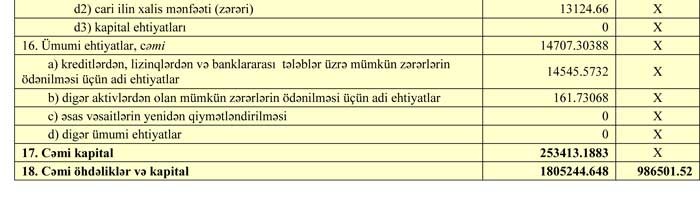 “XalqBank” 2016-cı ilin 9 ayında 45 milyon 290 min manatlıq əməliyyat mənfəətinin 44 milyon 387 min manatını ehtiyatlara ayırdığından 972 min manat xalis mənfəət açıqlamışdı.