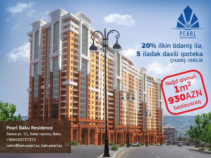 Dəniz mənzərəli "Pearl Baku Residence" premium klass yaşayış kompleksində mənzilin 1 kvadrat metrinin qiyməti nağd alış zamanı 930 manatdan başlayır. 20 fiaz ilkin ödəniş etməklə, 5 illik kreditlə də mənzilə sahib olmaq mümkündür. Mənzil sahiblərinə çıxarış (kupça) təqdim ediləcəyi bildirilir.