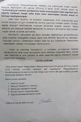 Yol Nəqliyyat Hadisəsi zamanı xəsarət və ölüm halında mütləq “Cinayət işi başlanır”. Bununla bağlı müxtəlif araşdırma və ekspertizalar keçirilir. Hətta ölüm halında zərərçəkənin hüquqi varsiləri onlara düşən sığorta kompensasiyasını unuda bilər. Bu bir mentalitet məsələsidir. Çünki hüzr zamanı varislərin sığorta şirkətinə gəlmələri və s. problemlər yaradır. Lakin bir müddət sonra hadisə ilə bağlı Polis öz işini yekunlaşdıraraq ya xəsarətin dərəcəsindən asılı olaraq “Cinayət işinin rədd olunması barədə qərar ” qəbul edir ya da işi məhkəməyə göndərir. Proses məhkəmədə davam etdirilir, sənədlər məhkəməyə göndərilir. Məhkəmədə ən sonda dövlətin adından “Hökm ” çıxarılır. Hökm isə dövlətin adından çıxarıldığı üçün bütün hüquqi aktlardan daha üstün sayılır.