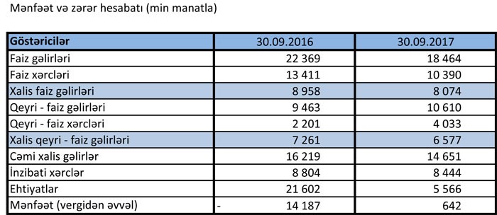 Bank 9 ayı 642 min manatlıq mənfəətlə başa vurub.
