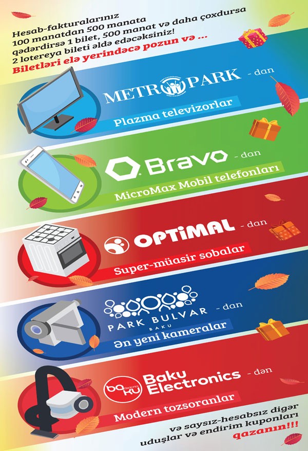 Bakı Şopinq Festivalının son iki həftəsi ərzində keçirilən lotoreya hamını qazandırmağa davam edir! Lotoreya iştirakçılarına “Metro Park”-dan 20 ədəd TV, “Park Bulvar” AVM-dən 20 ədəd kamera, “Bravo” hipermarketdən 20 ədəd mobil telefon, “Baku Electronics”-dən 20 ədəd tozsoran, “Optimal Electronics”-dən 20 ədəd soba hədiyyə olaraq təqdim olunacaq. Bununla yanaşı, bu linkdə göstərilən saysız-hesabsız hədiyyələrin sahibi ola bilərsinz http://bakushopfest.com/lotereya/lotereya-hediyyeleri/ !