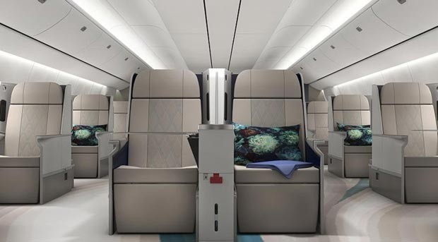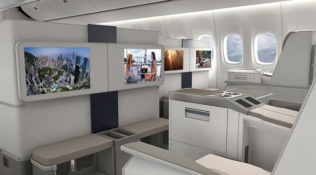 Təyyarənin oturacaqlarında iki fərqli sahə mövcuddur. Həmçinin burada USB portları, sürətli internet, yastıq və yorğan, televizor, açıb-bağlanan divanlar və s. var.