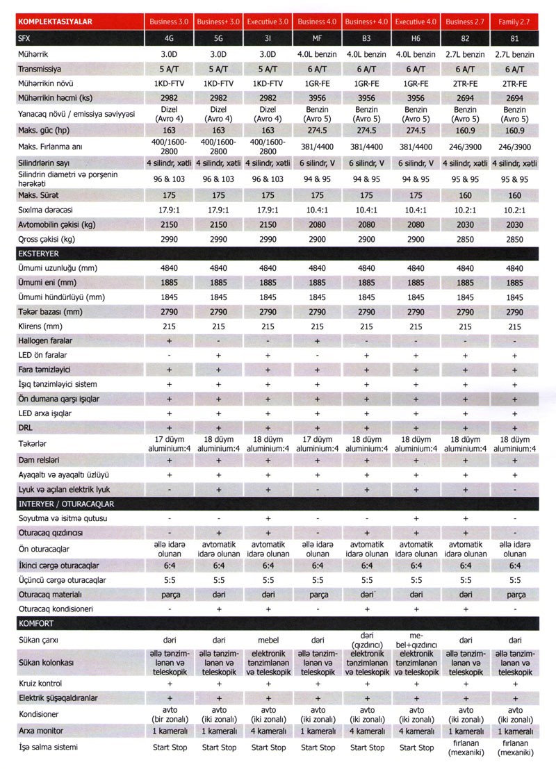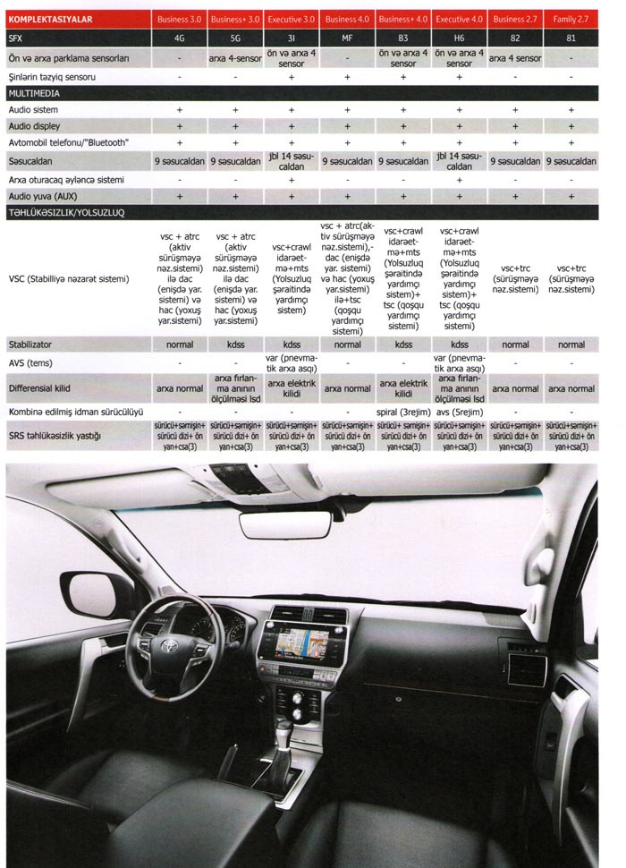 Yeni Prado Azərbaycanda 8 komplektasiyada təklif olunur.