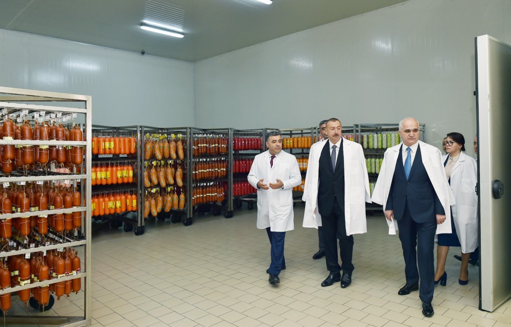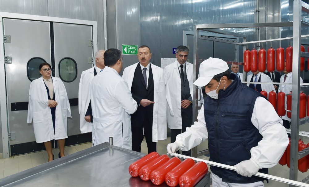 Prezident İlham Əliyev müəssisə tərəfindən istehsal edilən və “SAB” -“Made in Azerbaijan” brendi altında bazara çıxarılan ət və süd məhsullarının istehsalı prosesi ilə tanış oldu, hazır məhsullara baxdı.