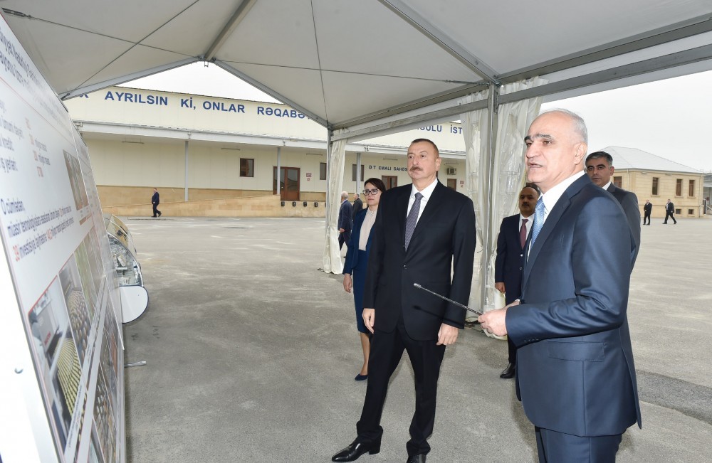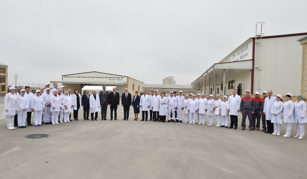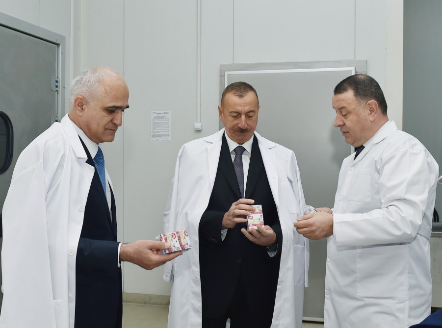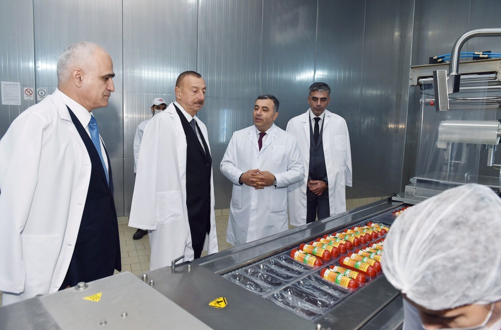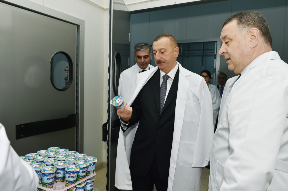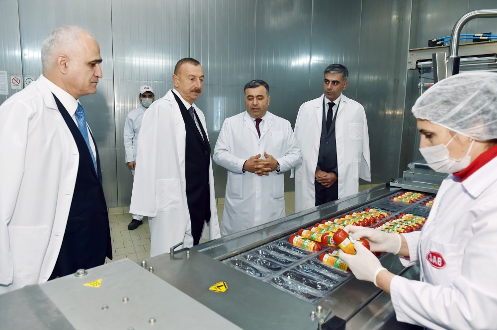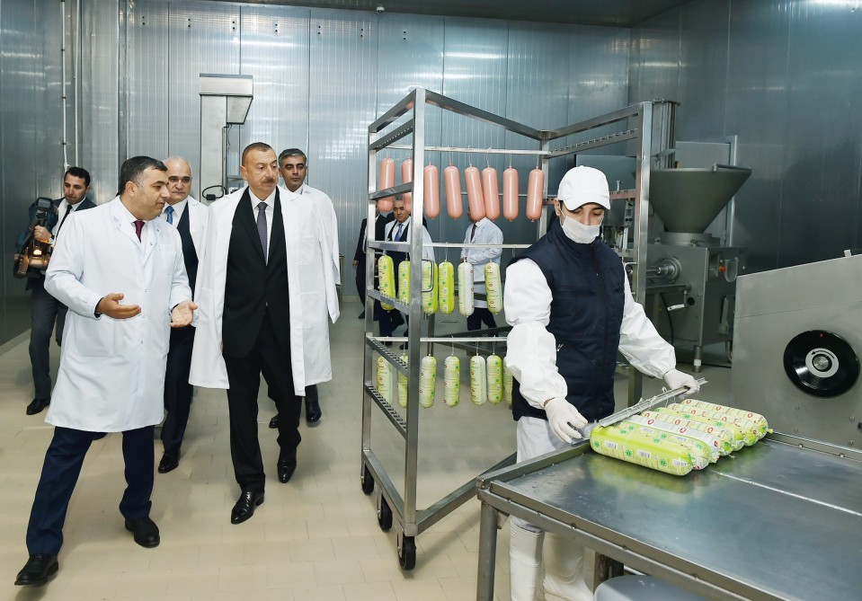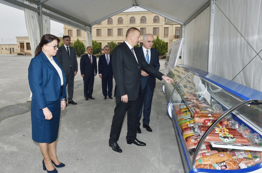 Prezident İlham Əliyev müəssisə tərəfindən istehsal edilən və “SAB” -“Made in Azerbaijan” brendi altında bazara çıxarılan ət və süd məhsullarının istehsalı prosesi ilə tanış oldu, hazır məhsullara baxıb.