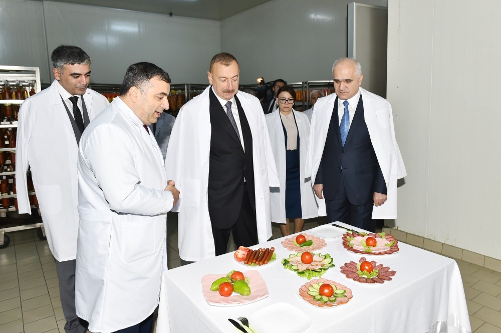 Prezident kolbasa istehsalçısının məhsulları ilə tanış oldu - FOTOLAR