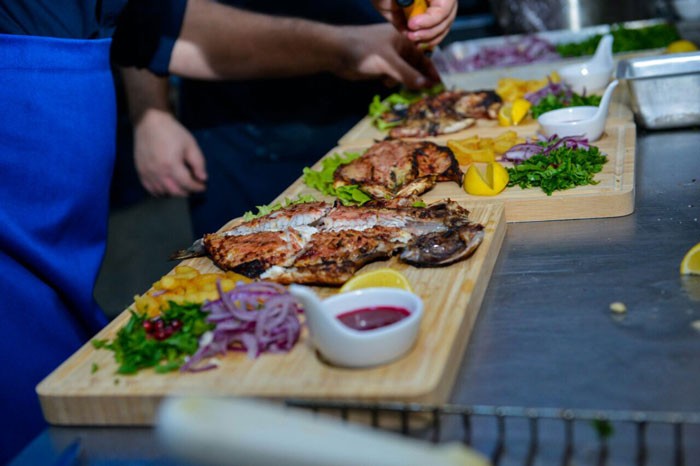 “Fish Port seafood cafe”sin sahibi Tural Məmmədov “Marja”ya bildirdi ki, eyni anda 50 nəfərə xidmət göstərə bilən kafe 80-dən artıq çeşiddə təamlar təklif edir: