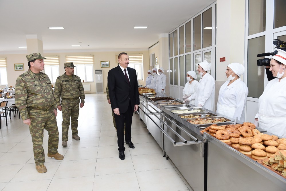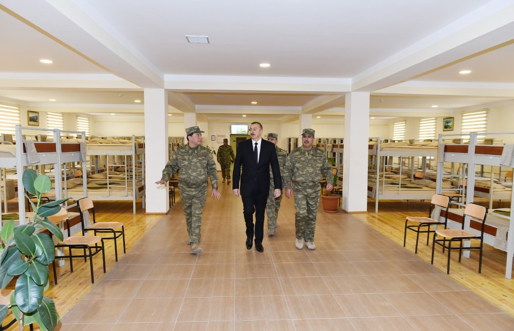 İlham Əliyev hərbi hissənin əsgər yataqxanasında olub, burada şəxsi heyət üçün yaradılmış sosial-məişət şəraitinə baxıb.