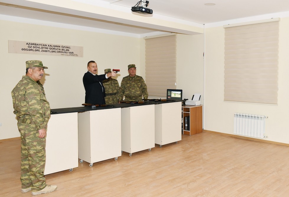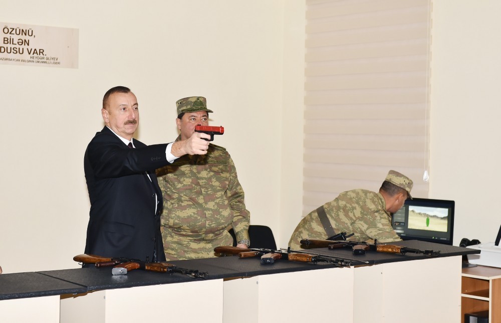Prezident özü də təlim silahlarına baxıb, onların atəş qabiliyyətini yoxlayıb.