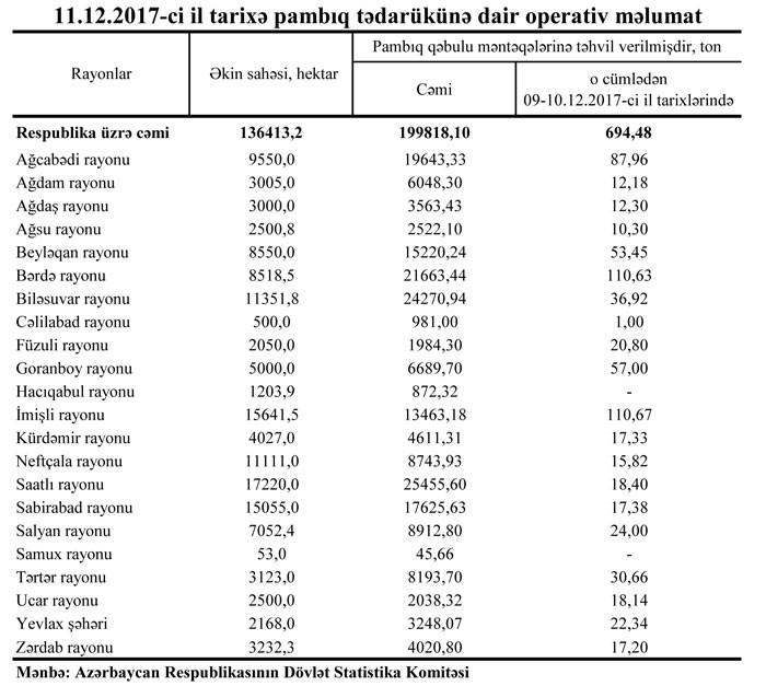 Pambıq tədarükü davam edir - SON RƏQƏM