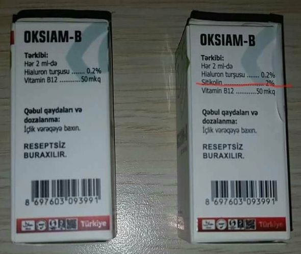 Saxta və orijinal “Oksiam – B” göz damcısı - AÇIQLAMA