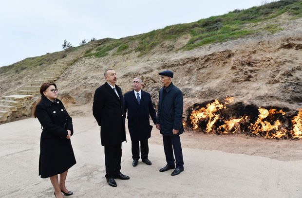 İlham Əliyev “Yanardağ” Dövlət Tarix-Mədəniyyət və Təbiət Qoruğuna baxıb.