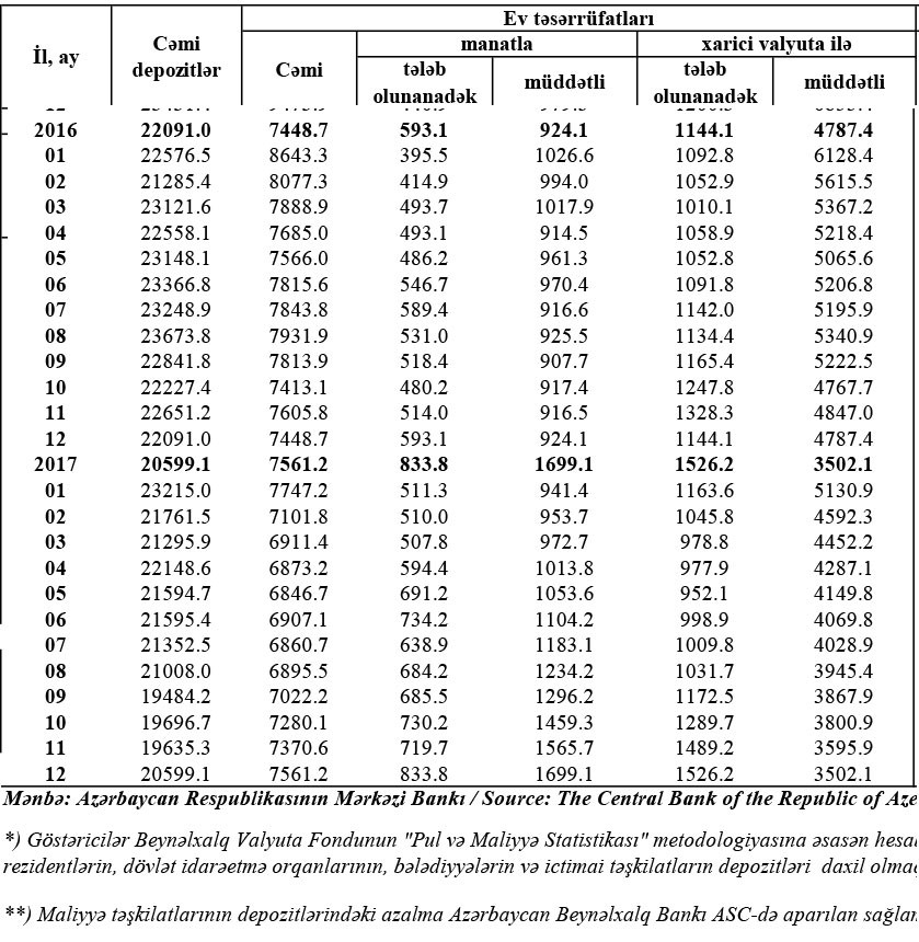 30 noyabr 2017-ci il tarixindəki banklardakı 7 milyard 370.6 milyon manat əmanətin 5 milyard 85,1 milyon manatı və ya 69%-i xarici valyutada, 2 milyard 285,4 milyon manatı və ya 31%-i milli valyutada olmuşdu.