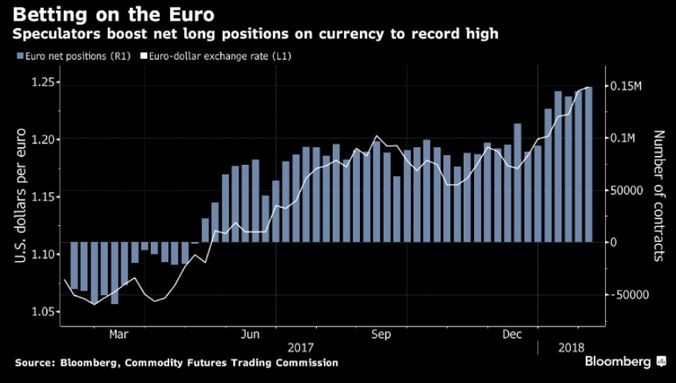 ABŞ Əmtəə Fyuçersləri Komissiyasının (CFTC) məlumatına görə, hedc fondları və pul menecerlərinin avrodakı xalis uzun mövqeləri, 30 Yanvar 2017-ci il tarixində 148742 müqavilə ilə 1999-cu ilin Yanvar ayından bu yana olan ən yüksək səviyyəyə çıxıb. Başqa ifadə ilə, Dollar satıb Avro alanlar artıb.