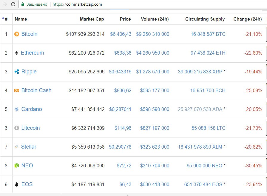 Bitcoin-in qiyməti 6 min 300 dollardan da aşağı düşərək son 12 həftənin ən aşağı səviyyəsini görüb.